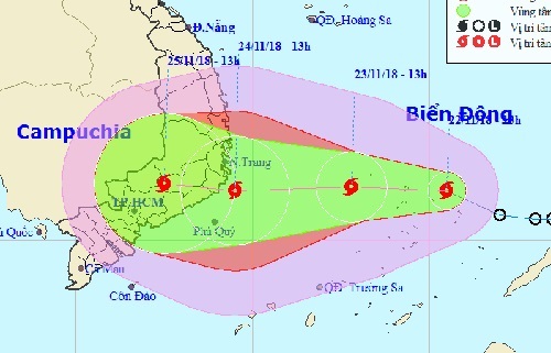 Dự báo trong 24 giờ tới, bão di chuyển theo hướng tây tây bắc, mỗi giờ đi được khoảng 15 km và có khả năng mạnh thêm. Đến 13 giờ ngày 23/11, vị trí tâm bão ở khoảng 11,5 độ vĩ bắc và 112,8 độ kinh đông cách bờ biển các tỉnh nam Trung bộ khoảng 340 km về phía đông.