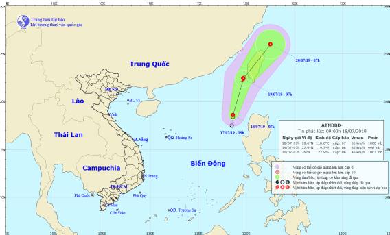 Dự báo trong 24 giờ tới, áp thấp nhiệt đới di chuyển theo hướng Bắc, mỗi giờ đi được khoảng 15-20km và có khả năng mạnh lên thành bão. Đến 07 giờ ngày 19/7, vị trí tâm bão ở khoảng 22,4 độ Vĩ Bắc; 119,7 độ Kinh Đông, ngay trên vùng biển phía Tây Nam Đài Loan. Sức gió mạnh nhất vùng gần tâm bão mạnh cấp 8 (60-75km/giờ), giật cấp 11.