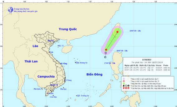 Cụ thể, hồi 13 giờ ngày 18/7, vị trí tâm áp thấp nhiệt đới ở vào khoảng 19,2 độ Vĩ Bắc; 118,7 độ Kinh Đông, trên vùng biển Đông Bắc Biển Đông, cách đảo Lu-dông (Phi-líp-pin) khoảng 230km về phía Tây Bắc. Sức gió mạnh nhất vùng gần tâm áp thấp nhiệt đới mạnh cấp 6-7 (40-60km/giờ), giật cấp 9. Bán kính gió mạnh từ cấp 6 trở lên khoảng 80km tính từ tâm áp thấp nhiệt đới.