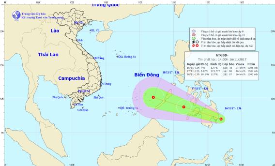 Tin từ Trung tâm Dự báo Khí tượng Thủy văn Trung ương, hiện nay (16/11) trên khu vực phía Đông miền Nam Philippin xuất hiện một vùng áp thấp.