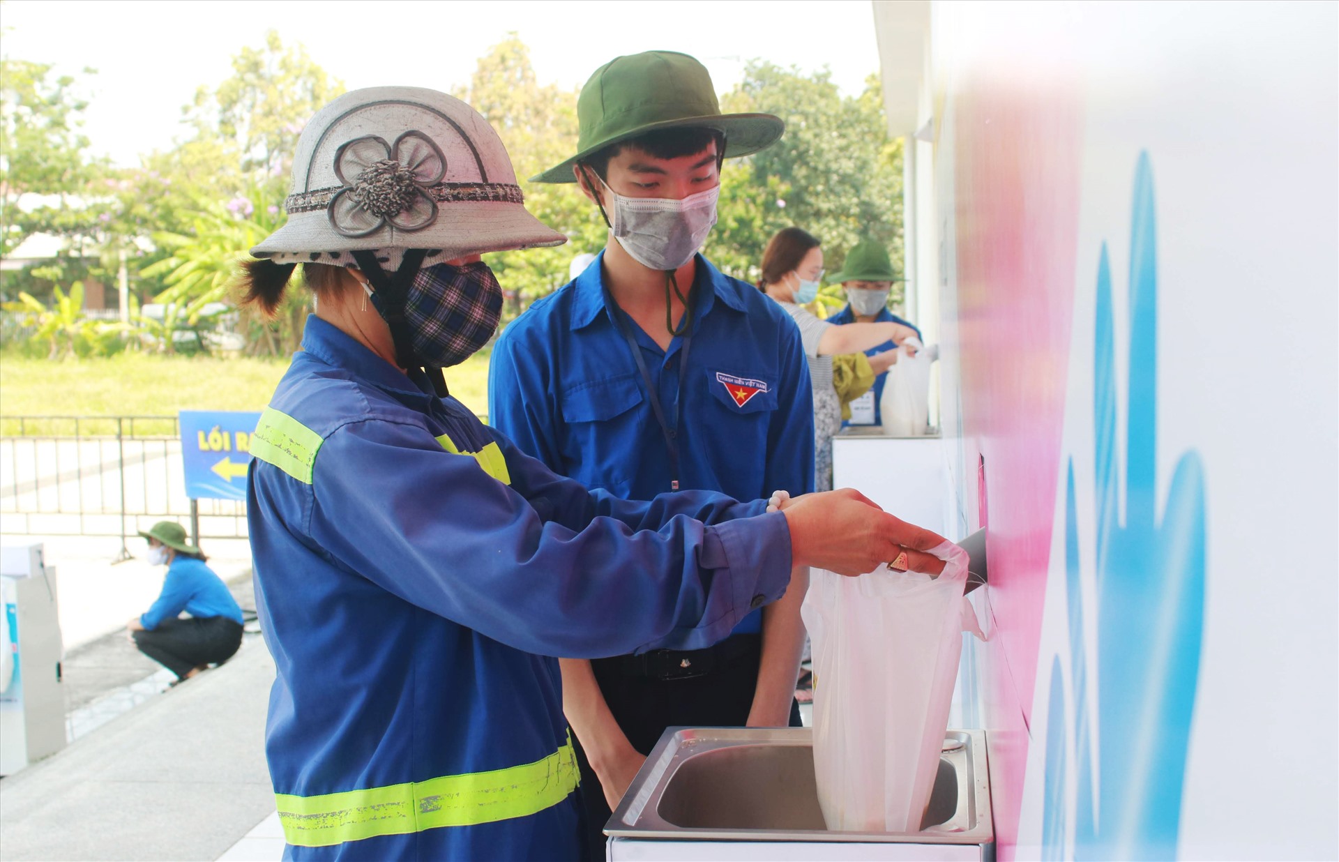 Không những thế, để đảm bảo vừa chống dịch vừa giúp người nghèo, tại vị trí trước máy “ATM gạo”, ban tổ chức cũng lắp đặt máy rửa tay tự động và tổ chức các lối đi để đảm bảo giãn cách giữa người đi nhận. Ngoài việc “chảy gạo”, chương trình cũng tặng người dân một số dụng cụ phòng dịch.