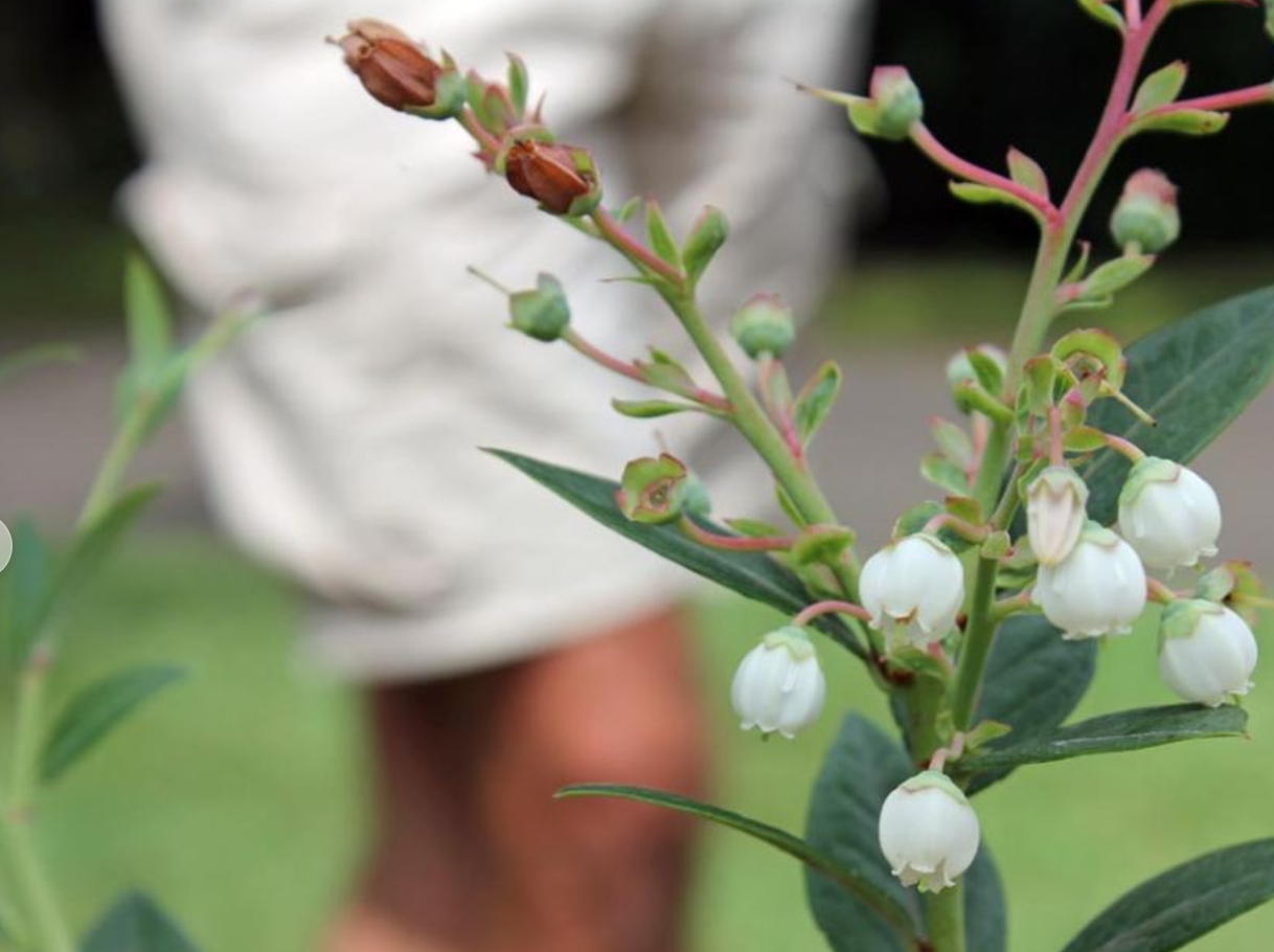 Blueberry, loại trái nhỏ khá đắt ở thị trường Việt Nam được trồng dọc khu phố này và mọi người có thể tự do thu hoạch.