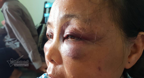 Ngồi nhấp nhổm vì mình mẩy đau nhức, những vết thương thâm tím hai bên mặt, máu vẫn tụ quanh mắt, bà Phúc ứa nước mắt kể: