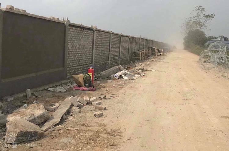 Bức tường rào được xây dựng ở sân bay Miếu Môn. Ảnh: PV