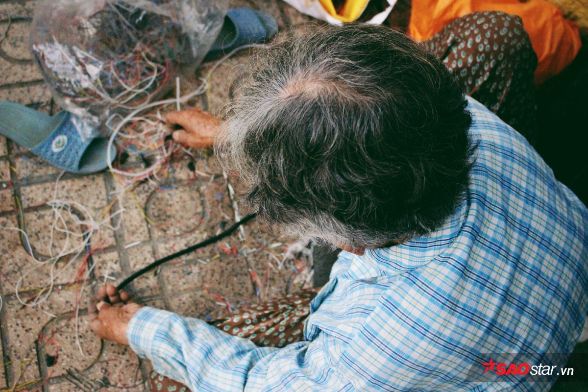 Ở một góc nhỏ trên đường Trần Bình Trọng (quận 5, TP. Hồ Chí Minh), ngày ngày vẫn có một bà cụ tỉ mẩn tách và gọt vỏ dây điện để lấy những mảnh đồng vụn. Bà tên thật là Nguyễn Thị Hai, quê gốc ở Tiền Giang. Dù có ba người con nhưng mỗi người mỗi cảnh, bà phải tự mưu sinh để kiếm tiền trang trải cuộc sống, thuốc men. Sáng sáng con gái đưa bà ra “chỗ làm”, đến chiều thì rước về. Hỏi sao không ở nhà cho khỏe, bà cười hiền: “Quen rồi. Ở nhà tối không thấy đường làm, lại rảnh tay rảnh chân không ai nói chuyện với mình. Ra đây vui hơn”.