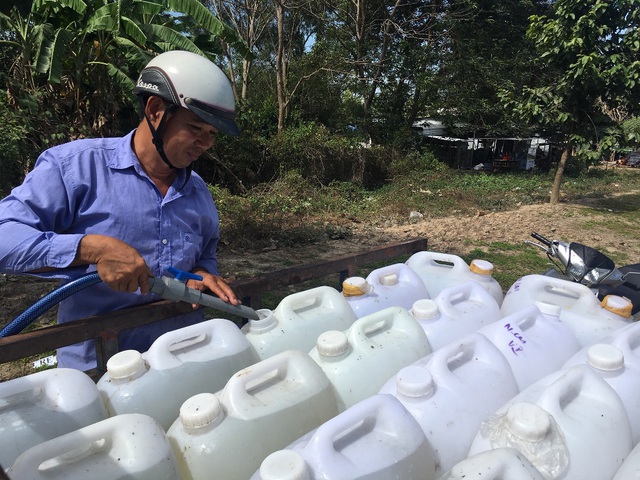 Ông Nguyễn Thanh Dũng, người sống bằng nghề chở nước thuê phấn khởi cho biết: “Nhiều người dân không có điều kiện đến lấy nước về xài, bà Hưởn giới thiệu tôi đi chở nước cho họ, lấy ít tiền công mưu sinh hàng ngày. Vừa rồi tôi lắp bồn chứa nước 1.000 lít để dự trữ nước. Hiện mỗi ngày tôi chở khoảng khoảng 4.000 lít nước cung ứng cho các hộ dân sử dụng”.