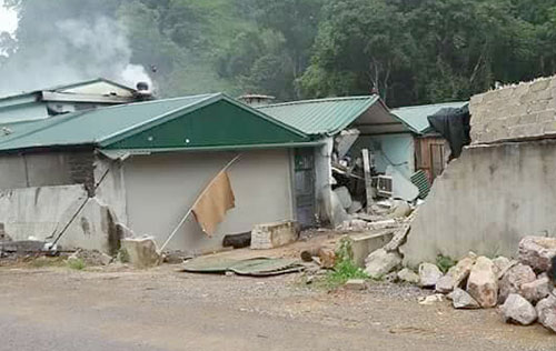 Bức tường và một số ngôi nhà bị phá trong cuộc vây bắt trùm ma túy. Ảnh: Việt Quân.