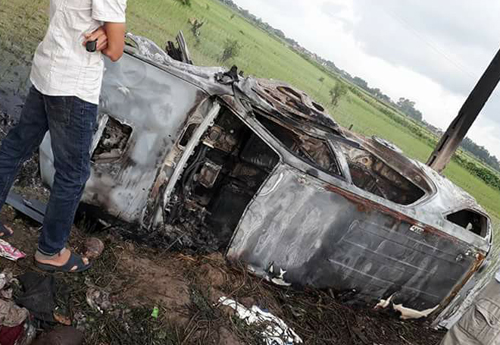 Chiếc xe bị đốt cháy rụi. Ảnh: Đức Hường.