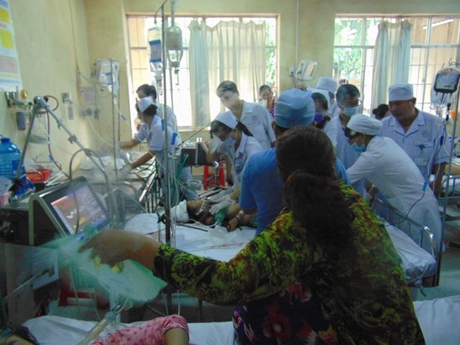 Các nạn nhân đang được cấp cứu, điều trị. Ảnh:NLĐ