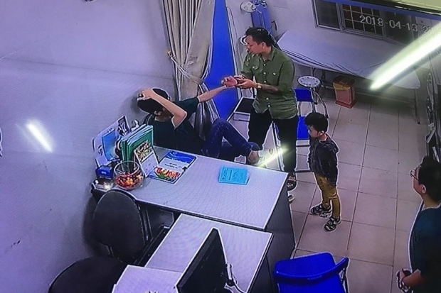 Video ghi lại cảnh người nhà bệnh nhi đánh bác sĩ. VIDEO: Vietnnamnet