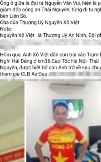 Bên cạnh đó, sáng 12/11, trên mạng xã hội lan truyền thông tin thượng uý Nguyễn Xô Việt là con trai của Đại tá Nguyễn Văn Vui - Phó giám đốc Công an tỉnh Thái Nguyên.