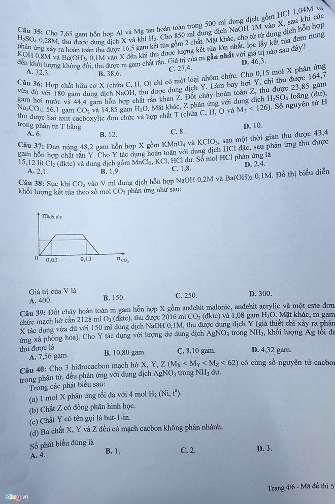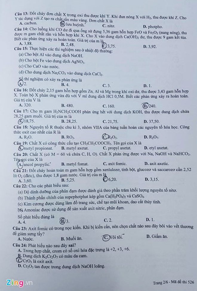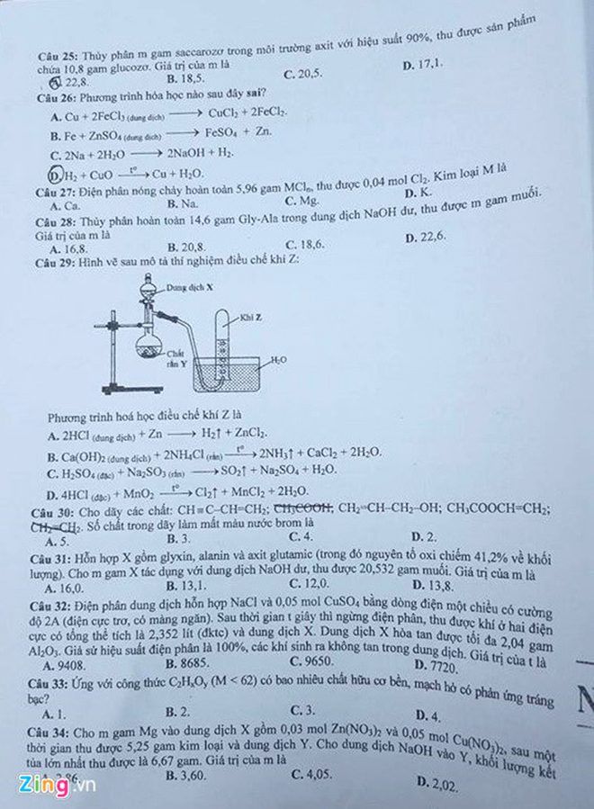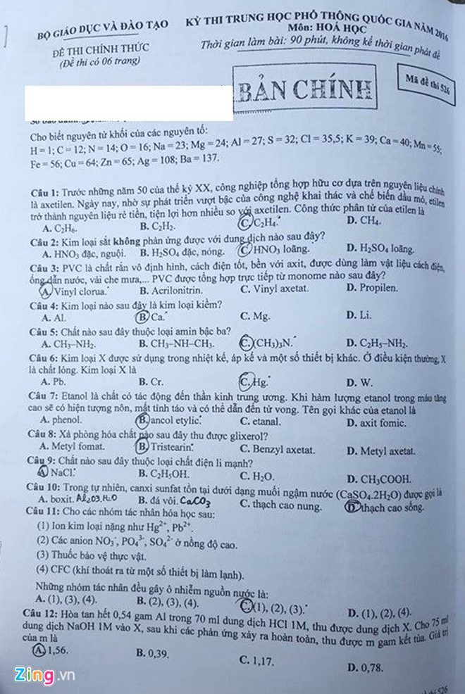 Lưu ý các đánh dấu là của thí sinh, không phải đáp án môn Hóa học.