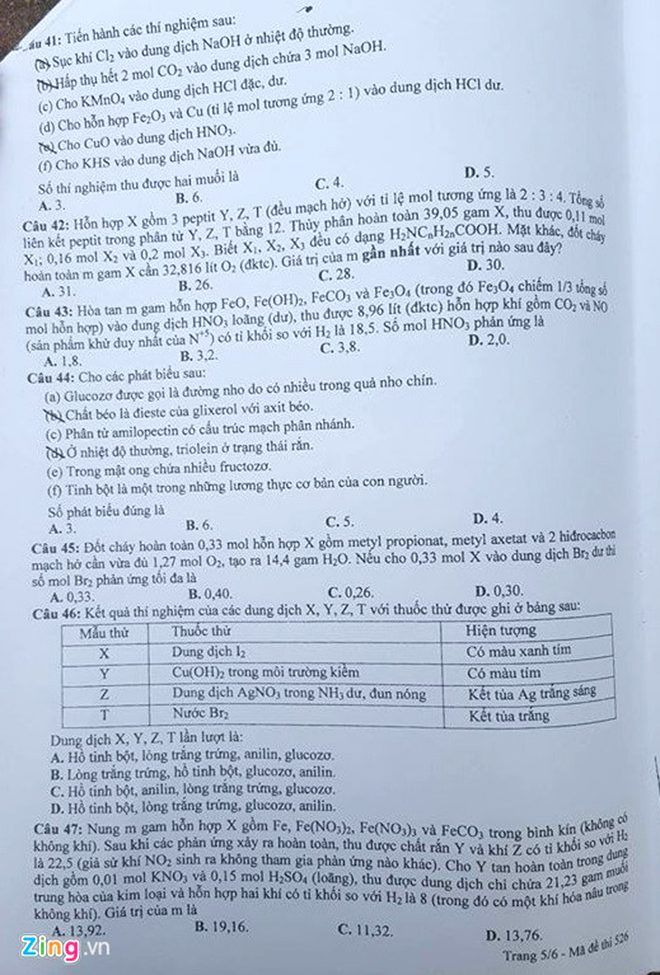 Đề thi môn Hóa học THPT quốc gia năm 2016 (mã đề 526):