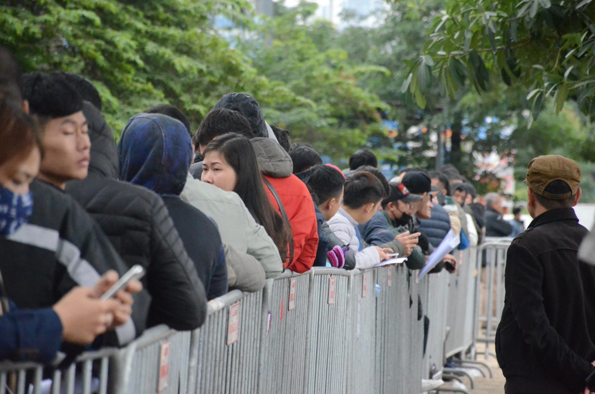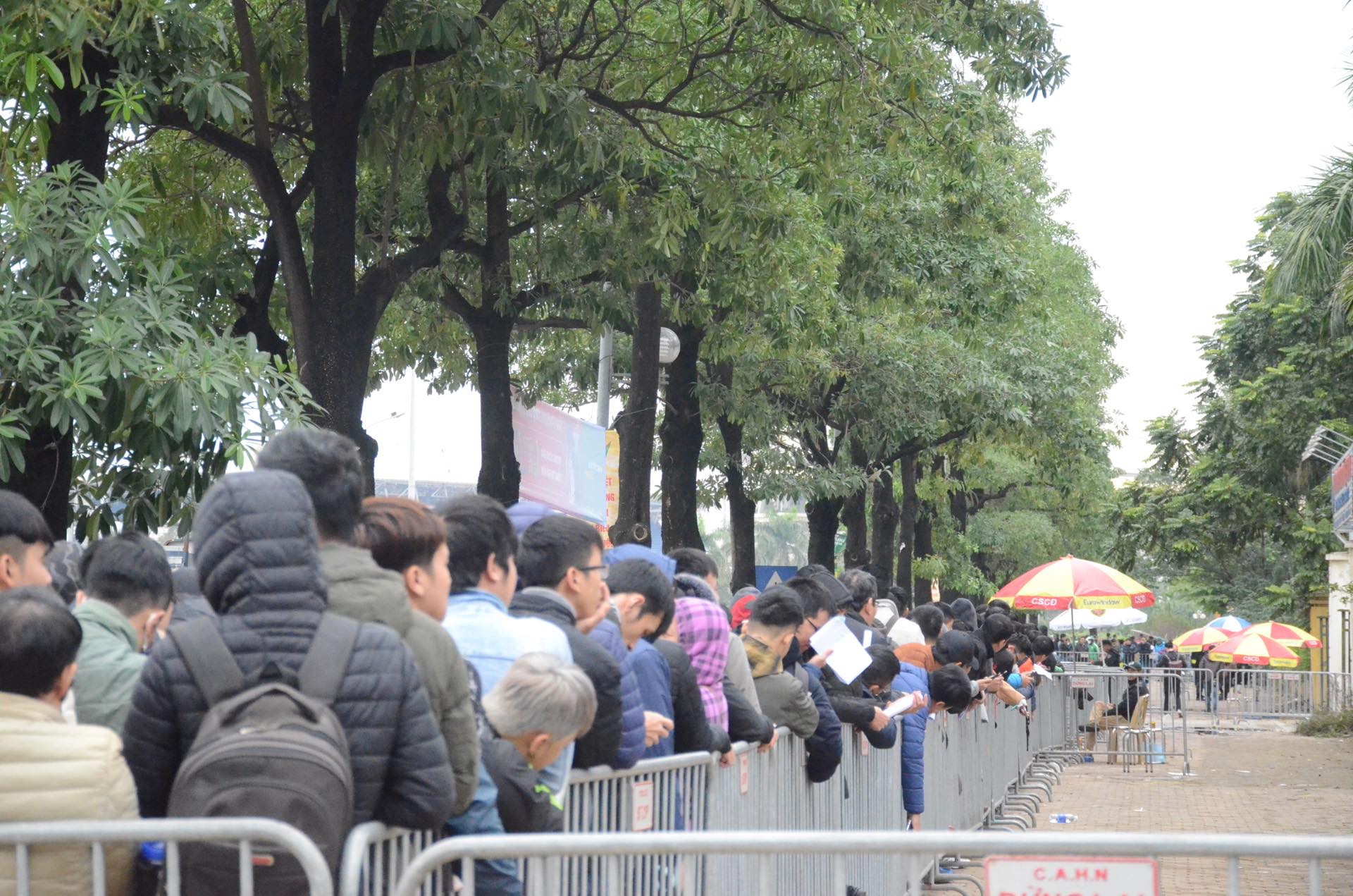 Cảnh hàng trăm người xếp hàng chờ lấy vé trận chung kết.