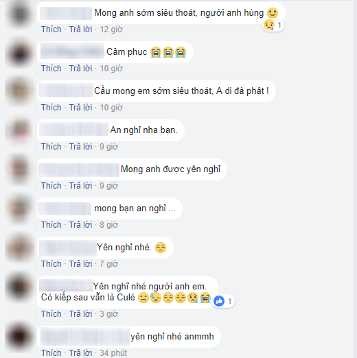 “Chia buồn cùng gia đình em. Mong linh hồn của em sớm được siêu thoát”, tài khoản T.P bày tỏ thương tiếc.