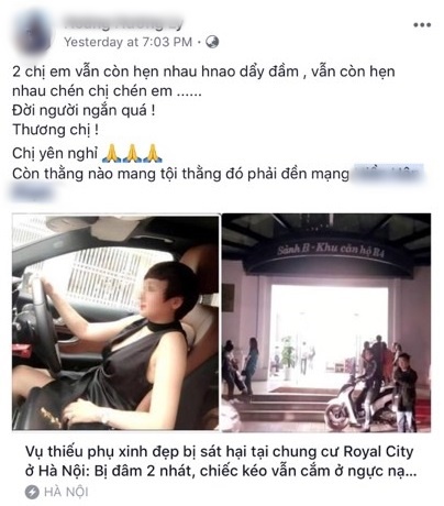 Một người bạn thân của chị H. là T.V cũng gửi những dòng tâm trạng đến người bạn xấu số của mình: “Mày à, biết nói gì nữa khi mày không còn trên đời này. Đáng ra buổi tối hôm nay mày đã có mặt với bọn tao ở đây để cùng nhau bọn mình đón Halowen. Vé cũng cầm, cũng check-in sao mày không vào. Giờ này tao mới ngồi để viết được cho mày mấy chữ, cần gì hay như thế nào có bọn tao ở đây rồi, rất thương tiếc mày. Thương mày, yên nghỉ nhé”.