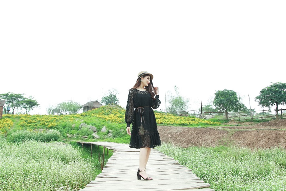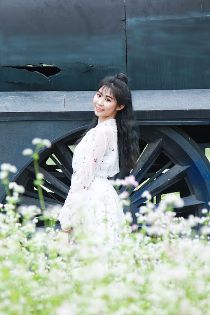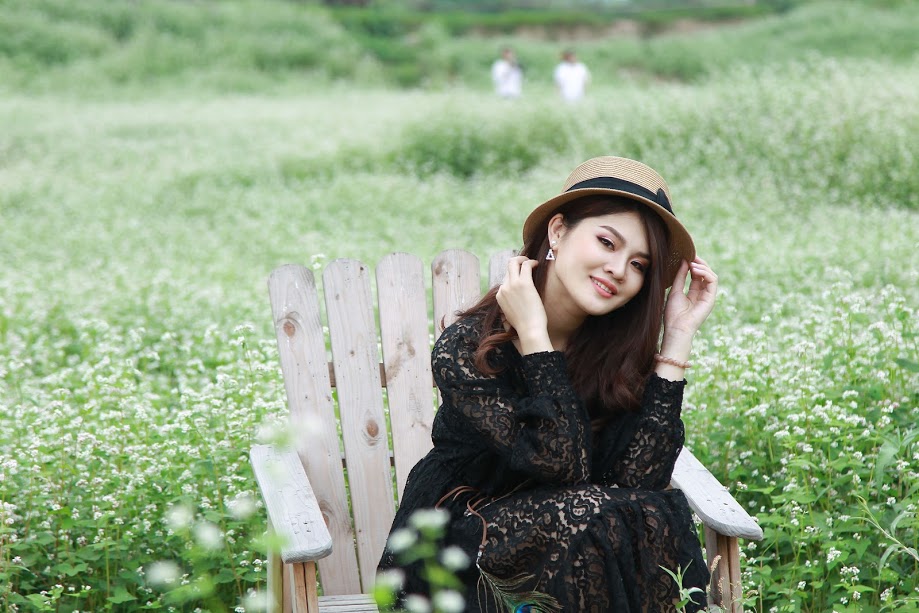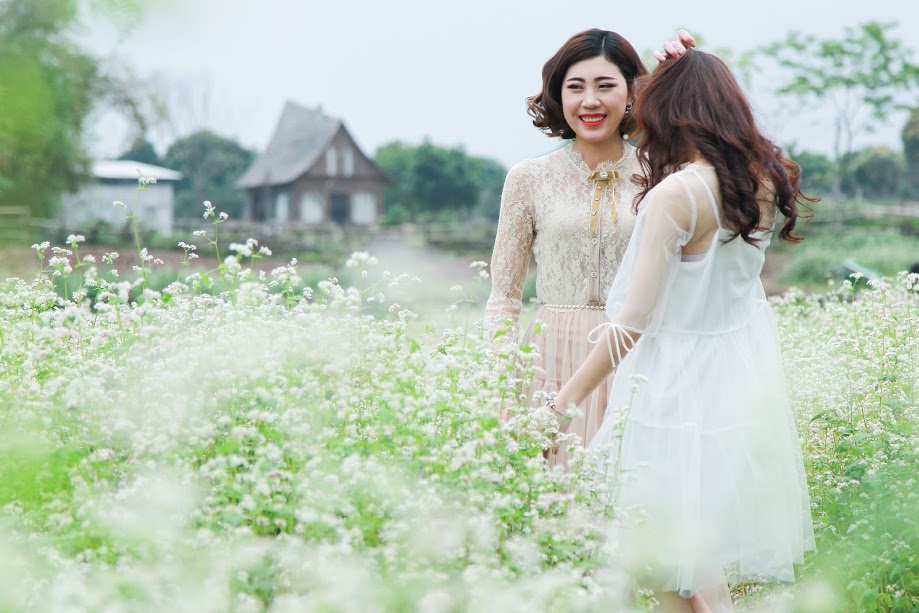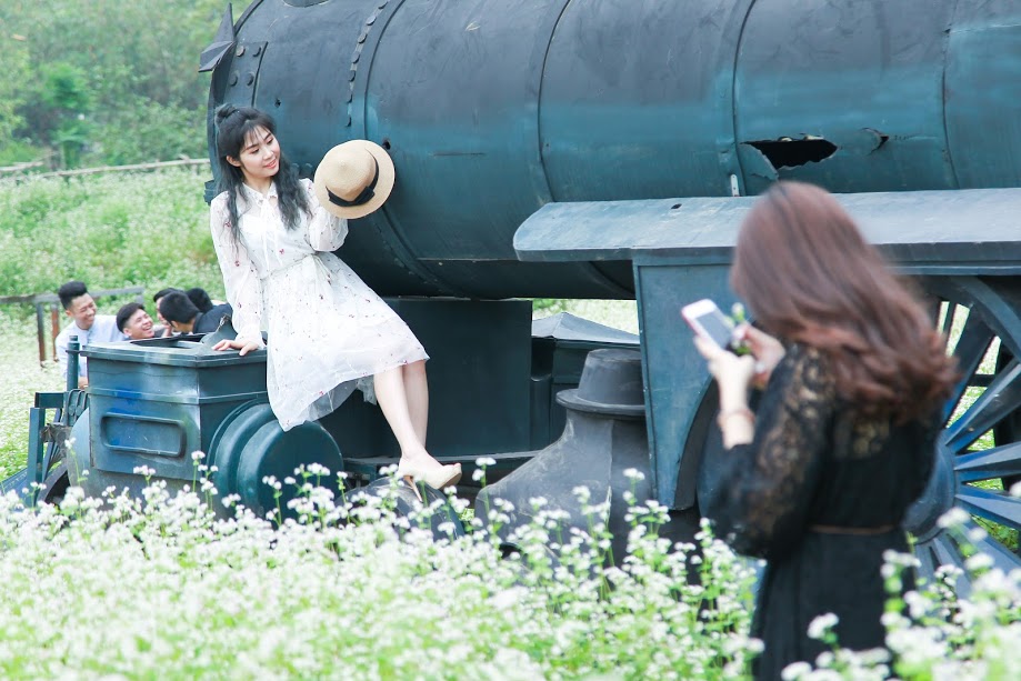 Các cô gái không quên ăn vận đẹp đẽ đến chụp hình với hoa.