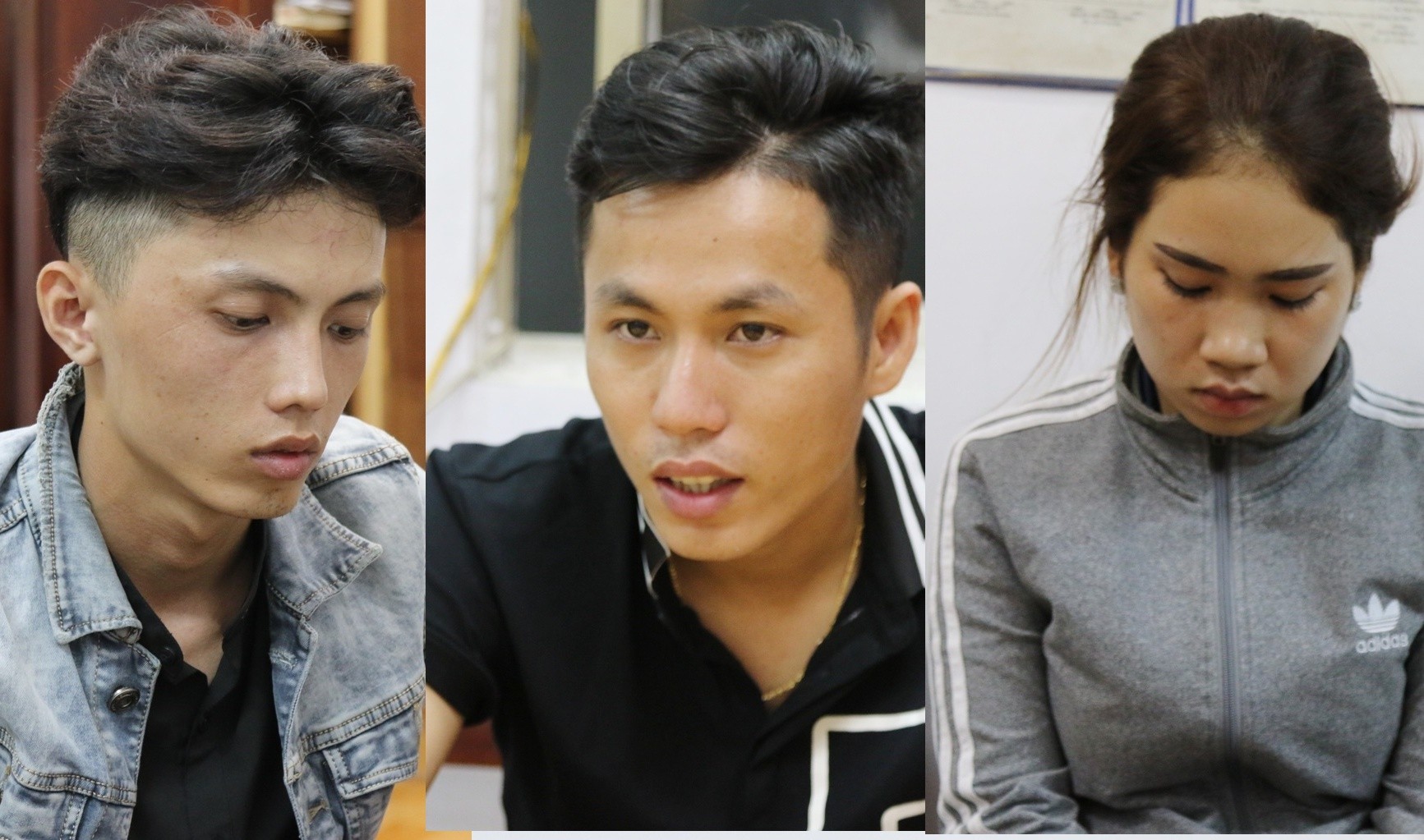 Các đối tượng từ trái sang: Trực, Huy và Linh. Ảnh: Công an cung cấp.