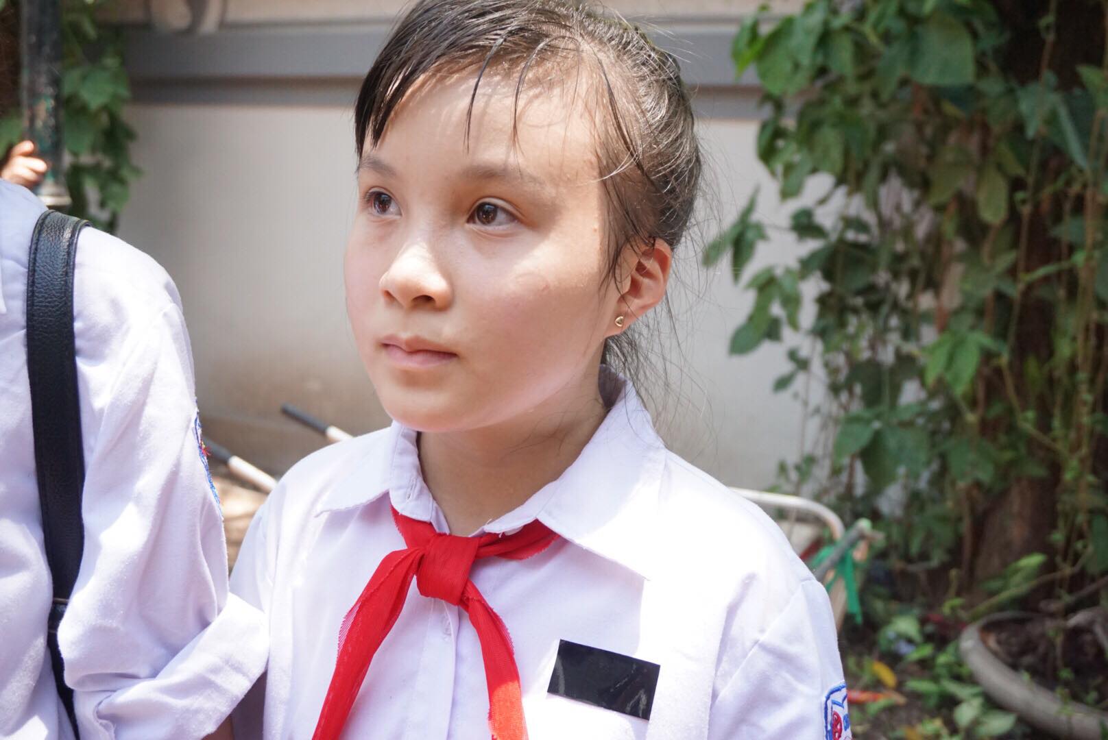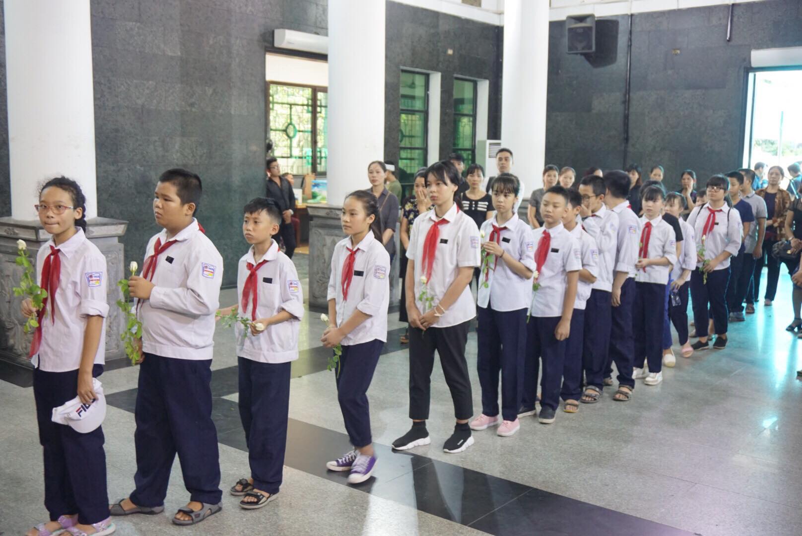 Trên tay cầm bông hồng trắng, tập thể lớp 7A9, Trường THCS Phan Chu Trinh, Hà Nội cũng có mặt để đưa tiễn người bạn của mình. Khuôn mặt ai nấy đều buồn và thương cảm cho người bạn xấu số.