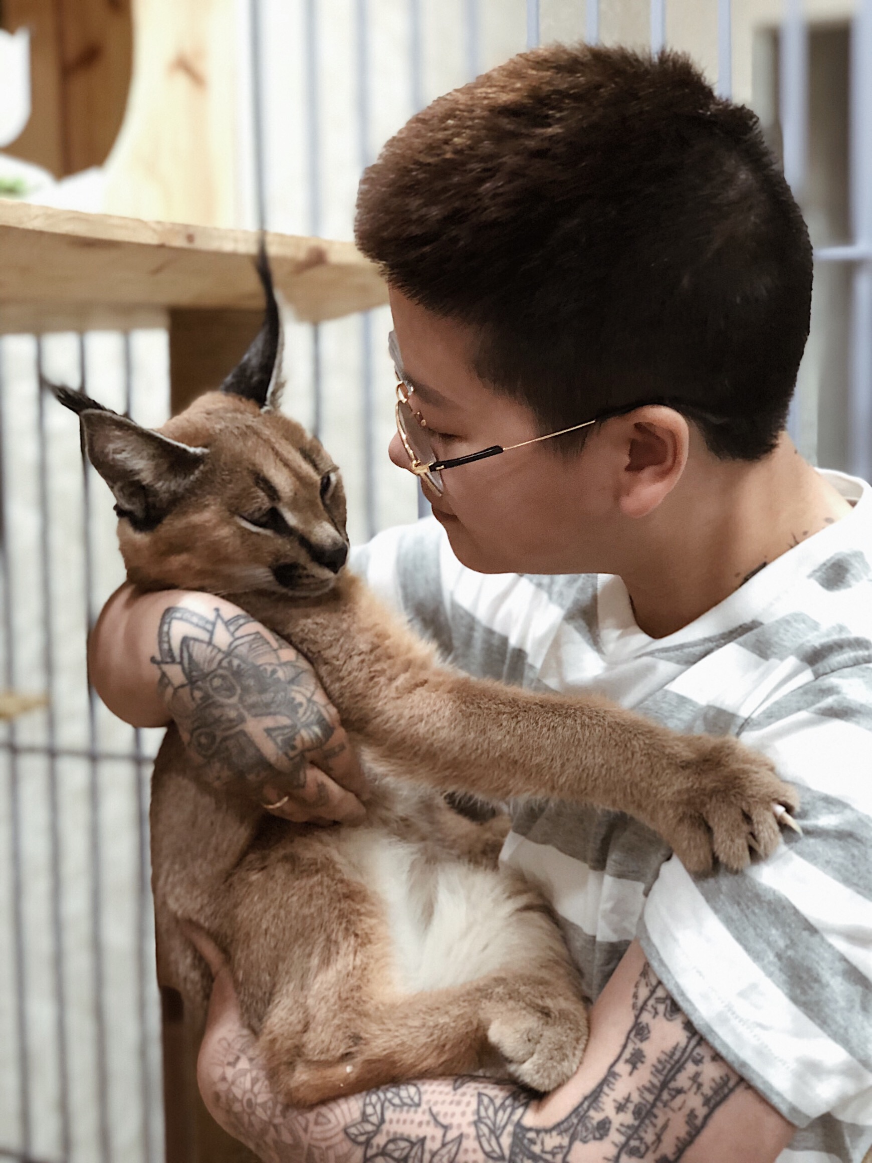 Là người đang trực tiếp nuôi dưỡng 3 linh miêu hoang dã “có một không hai” ở Việt Nam, Kim Vỹ (26 tuổi), chủ một chuỗi cửa hàng chăm sóc thú cưng ở Biên Hòa cho biết quá trình thuần hóa linh miêu không hề dễ dàng.