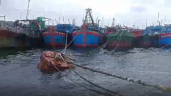 Tàu thuyền của ngư dân neo đậu trú bão trong âu cảng Bạch Long Vĩ. Ảnh: Thanh Niên