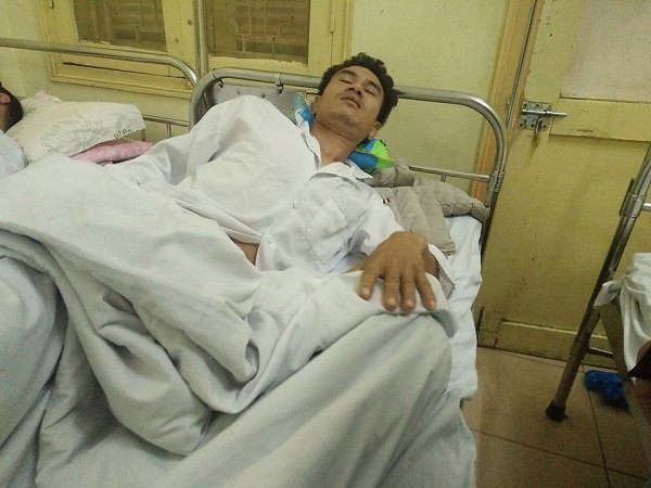 Nằm trên giường bệnh, anh Phương cho biết, sau 3 ngày điều trị, đến nay anh vẫn thấy choáng váng, mạn sườn vẫn còn đau nhức và chưa đi lại được. Hiện vợ anh đang vừa phải trông anh, vừa phải chạy qua Bệnh viện K Trung ương để chăm mẹ.