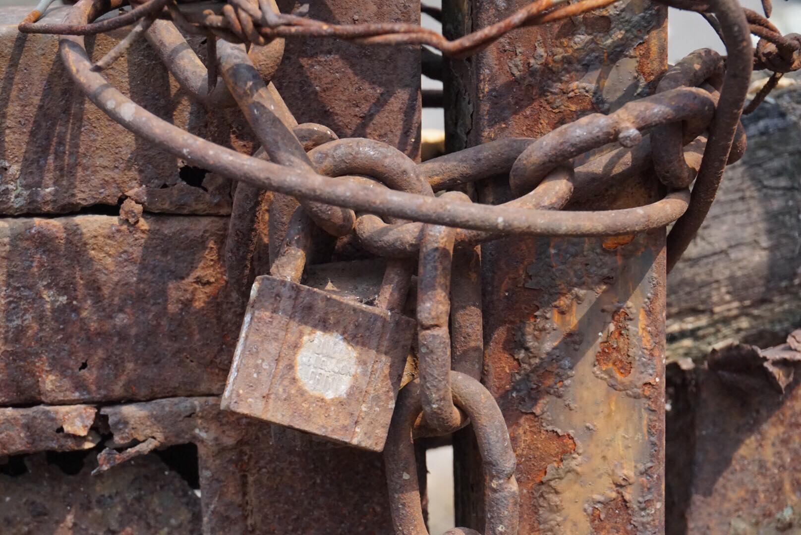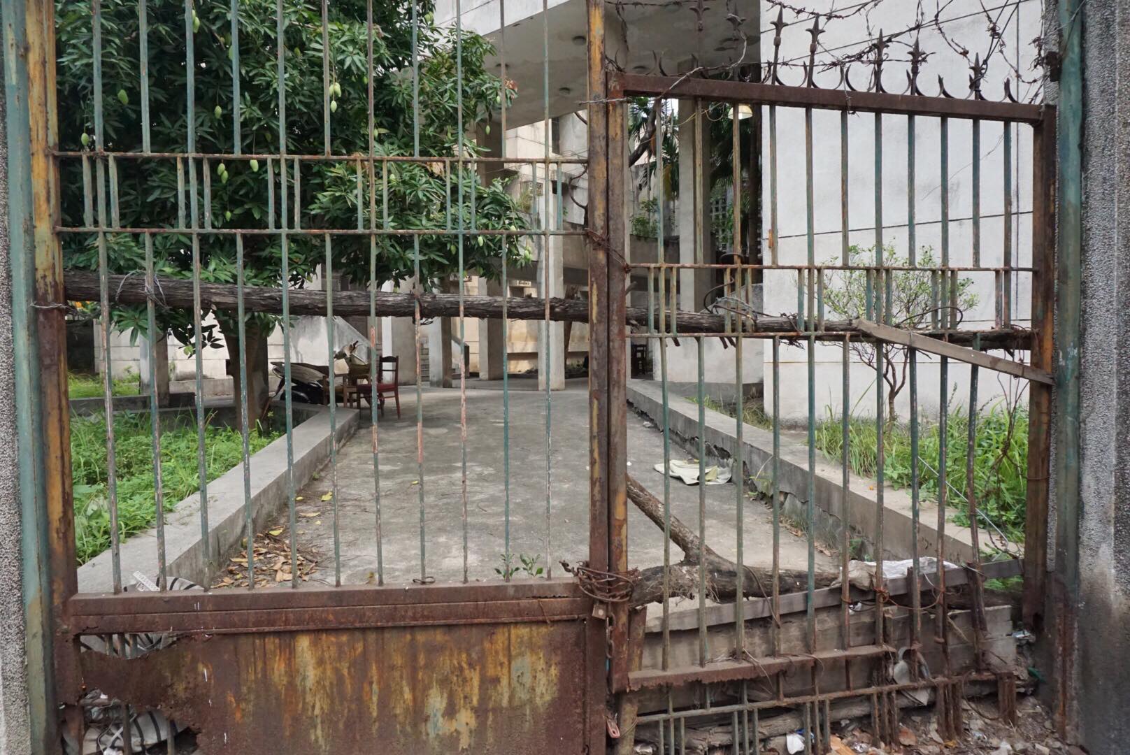 Khóa cổng đã bị hoen rỉ sau nhiều năm khoá kín.