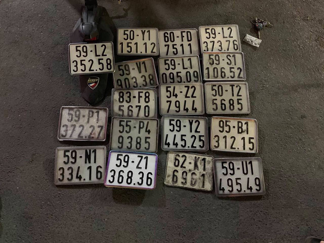 Cũng liên quan đến vụ việc, khám xét nơi ở của các đối tượng, công an thu giữ nhiều xe máy và hàng chục biển số xe được tháo rời cùng nhiều tang vật khác có liên quan.