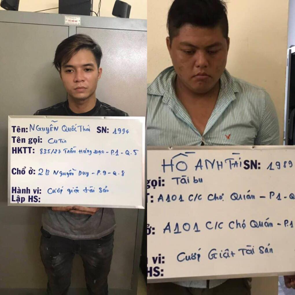 Ngày 30/6, Đội 3, Phòng cảnh sát Hình sự (PC02), Công an TP.HCM cho biết, đơn vị này vừa bàn giao 2 đối tượng Hồ Anh Tài (hay gọi là Tài ‘bu’, 30 tuổi) và Nguyễn Quốc Thái (25 tuổi) cùng ngụ quận 5, cho Công an quận 11 để điều tra về hành vi Cướp giật tài sản.