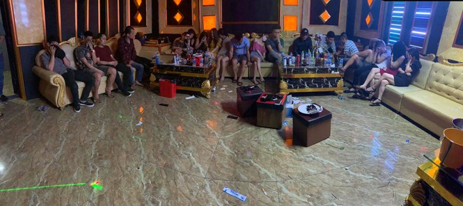 Khám xét nhanh tại 5 phòng hát, lực lượng chức năng phát hiện 73 thanh niên (48 nam, 25 nữ). Qua kiểm tra, công an thu giữ một số dụng cụ đựng ma túy cùng nhiều gói ma tuý tổng hợp và ketamin đang sử dụng dở. Những đối tượng này đa phần ở Nghệ An, còn một số khác ở Thanh Hóa, Hà Tĩnh. Qua test nhanh, cả 73 đối tượng đều dương tính với chất ma túy.