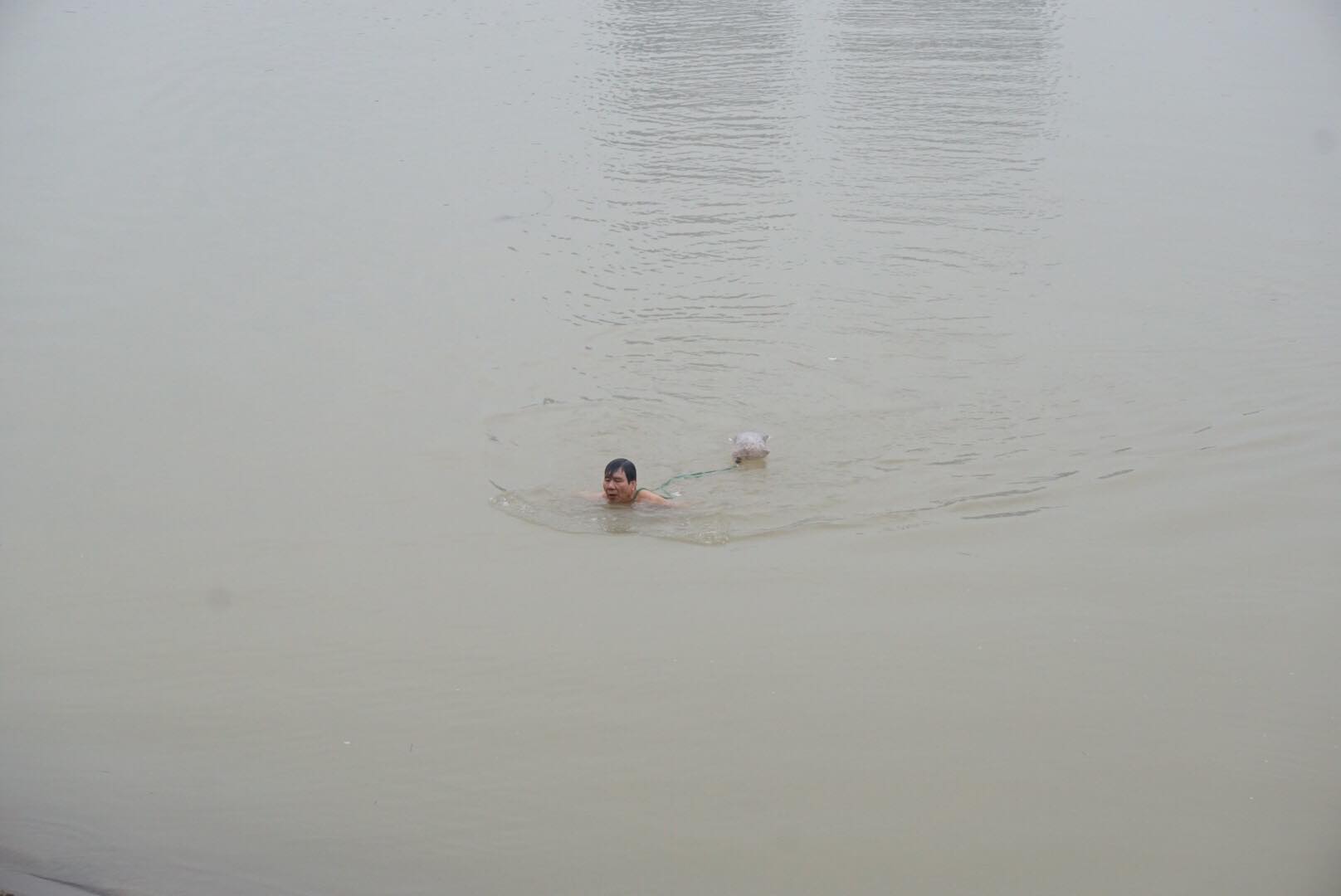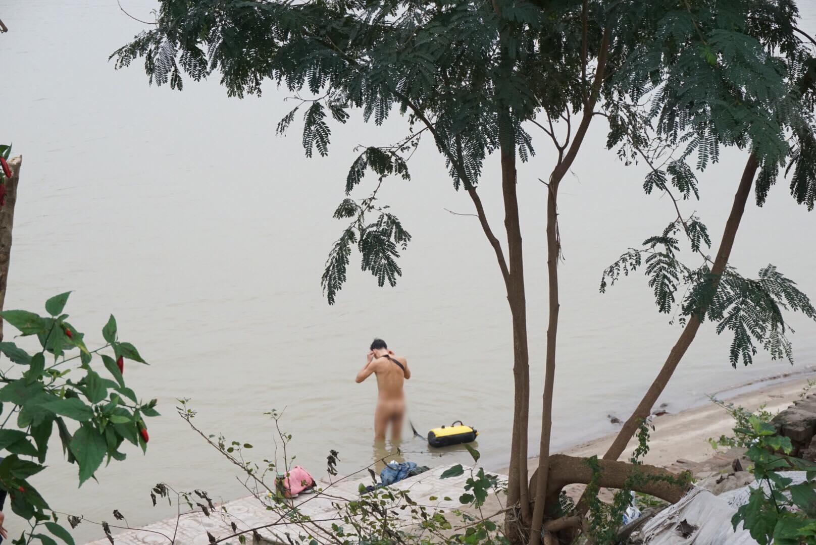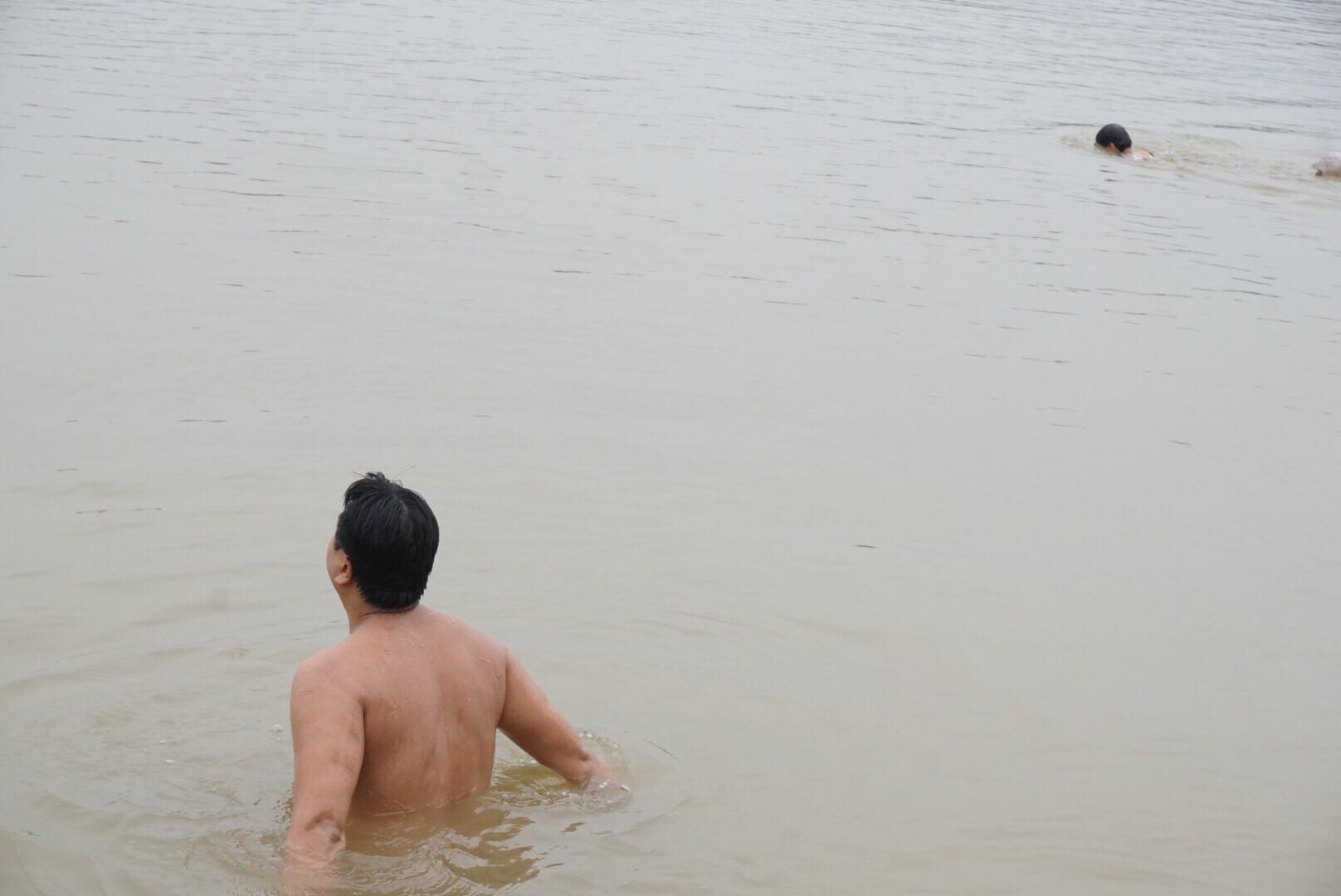 Không riêng anh Nghĩa mà ai ai có thói quen tắm sông Hồng cũng đều đặn hằng ngày tranh thủ thời gian ra đây tắm.