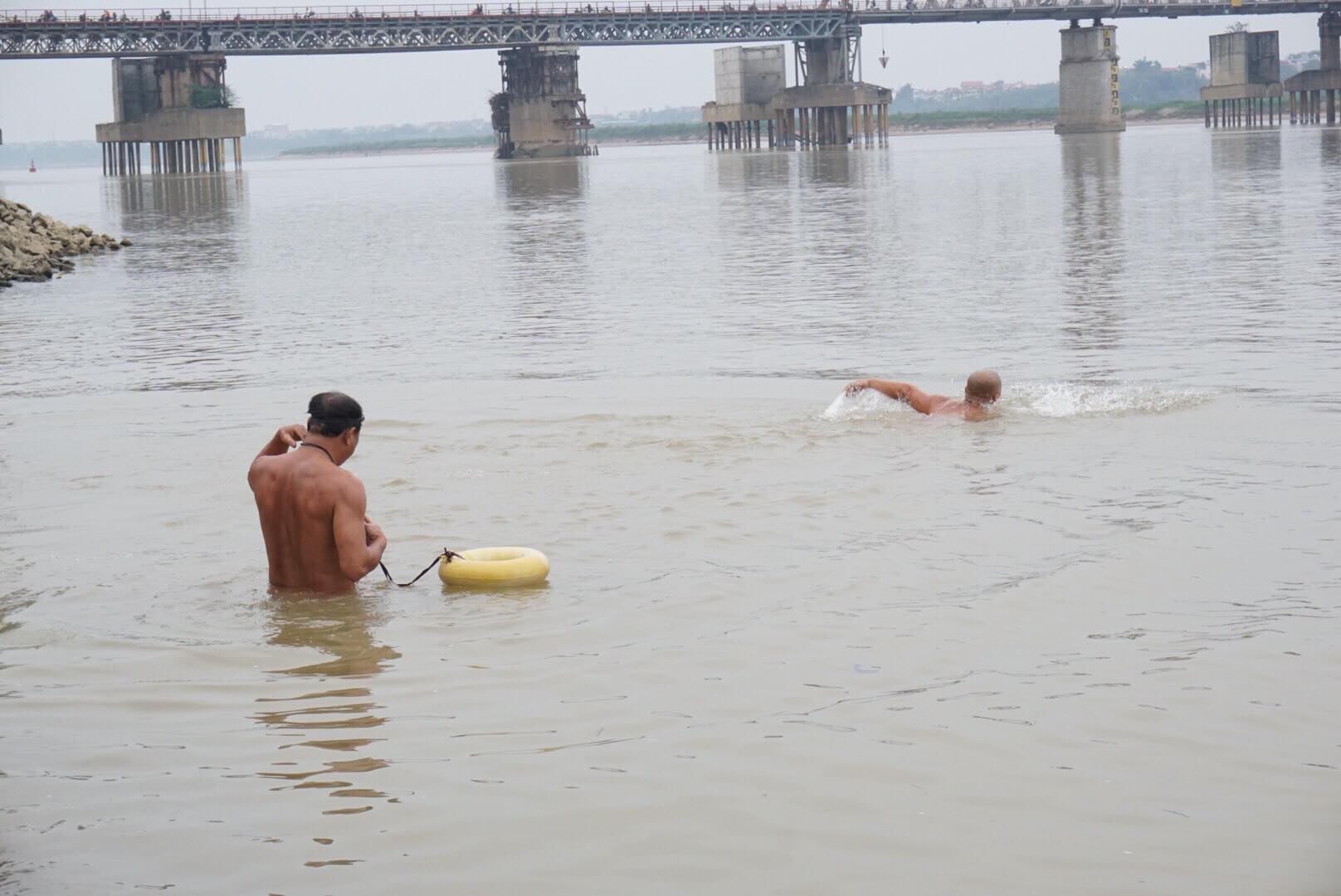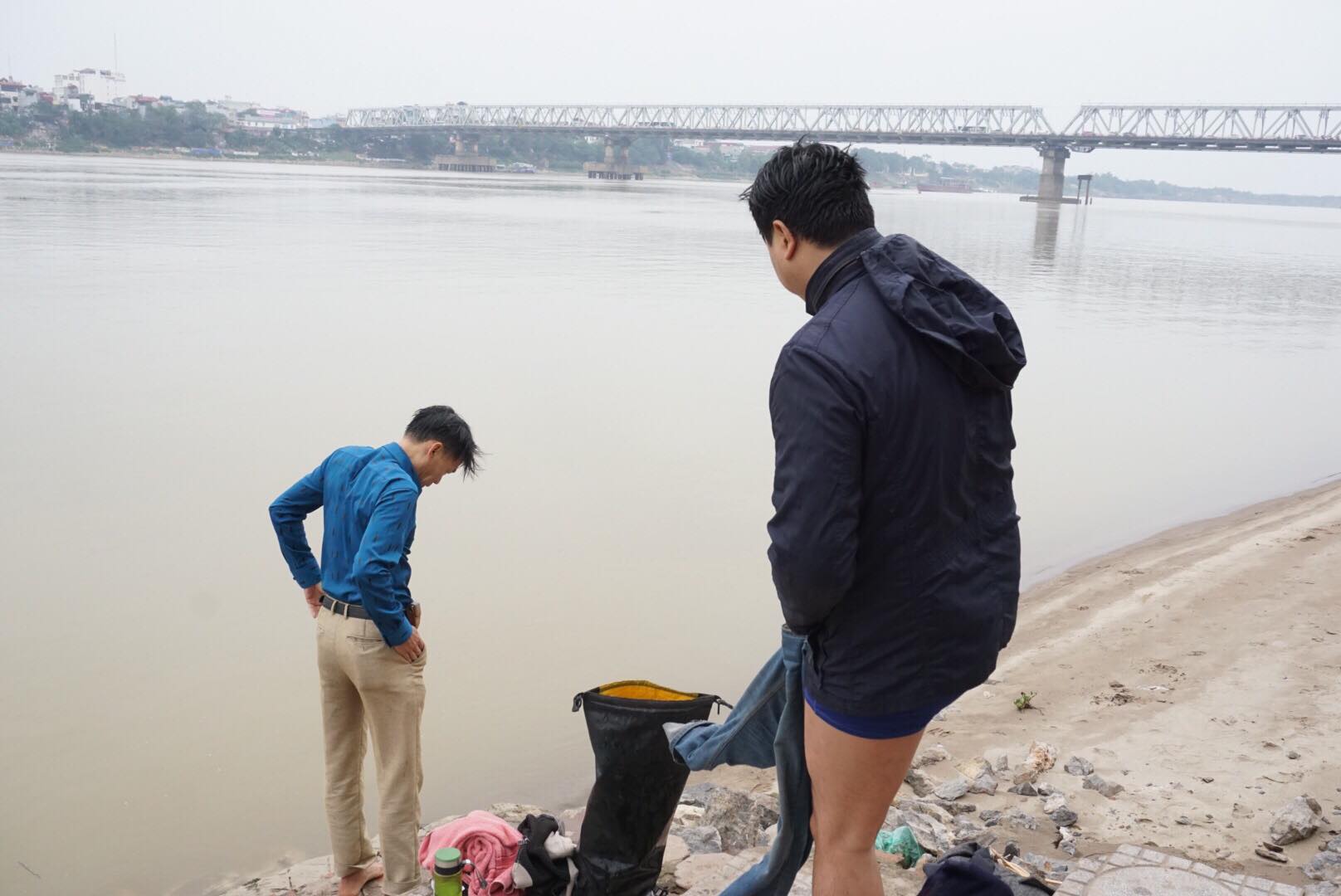 Anh Nguyễn Tuấn Nghĩa (44 tuổi) nhà ở ngay dưới chân cầu Long Biên cho biết, đều đặn ngày hai lần anh ra đây khởi động rồi tắm. Anh Nghĩa cho biết, nếu không tắm anh cảm thấy mệt mỏi, đuối sức.