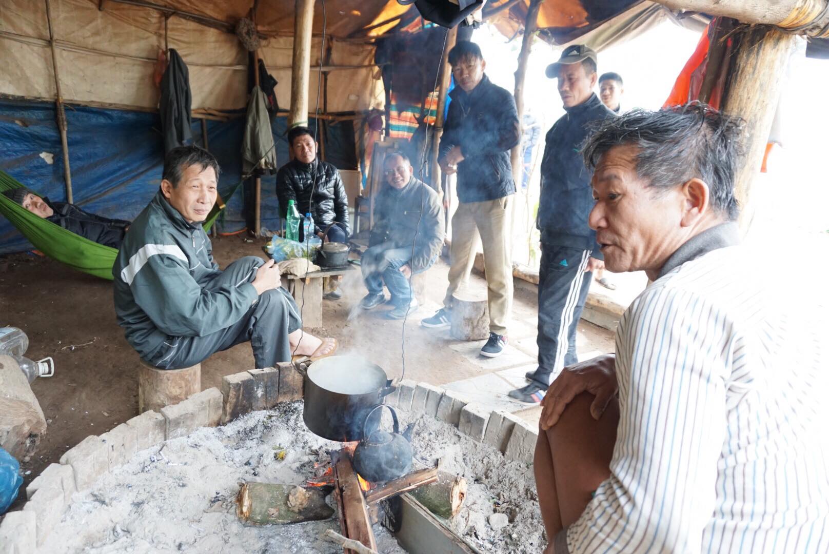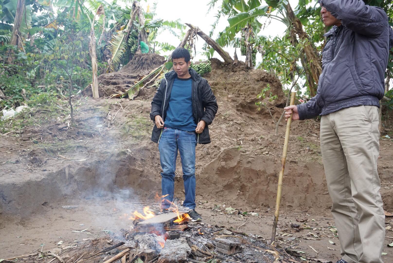 Trời giá rét nên trên bờ người dân luôn đốt củi sẵn để lúc tắm xong lên bờ có thể sưởi ấm cơ thể ngay.