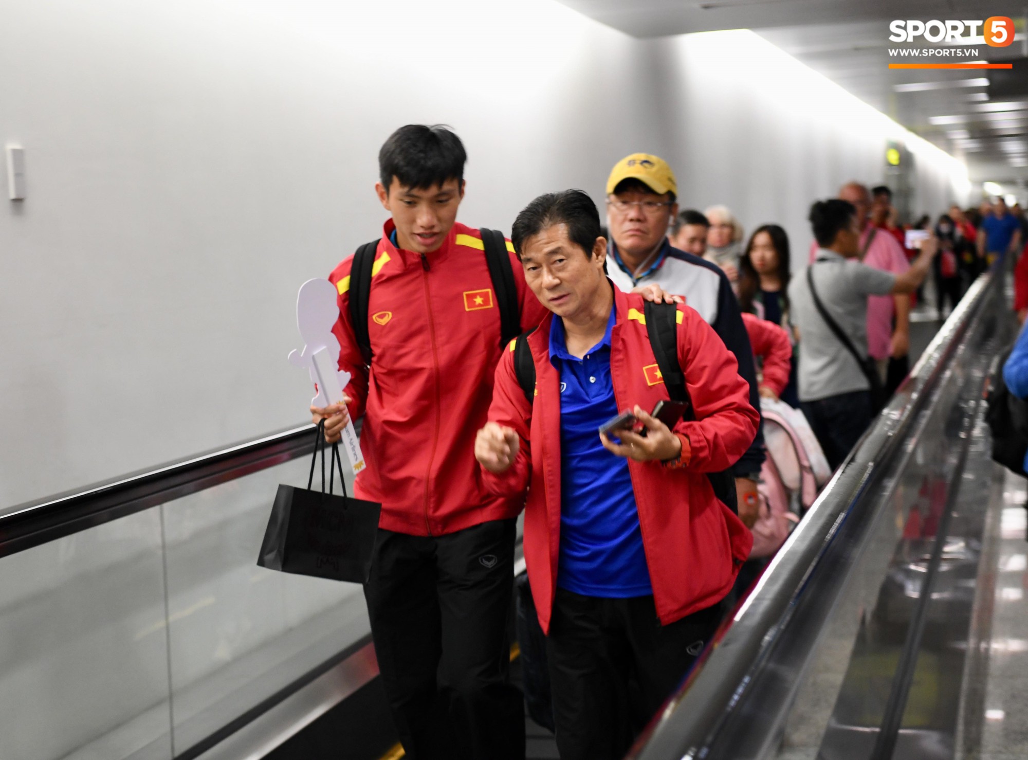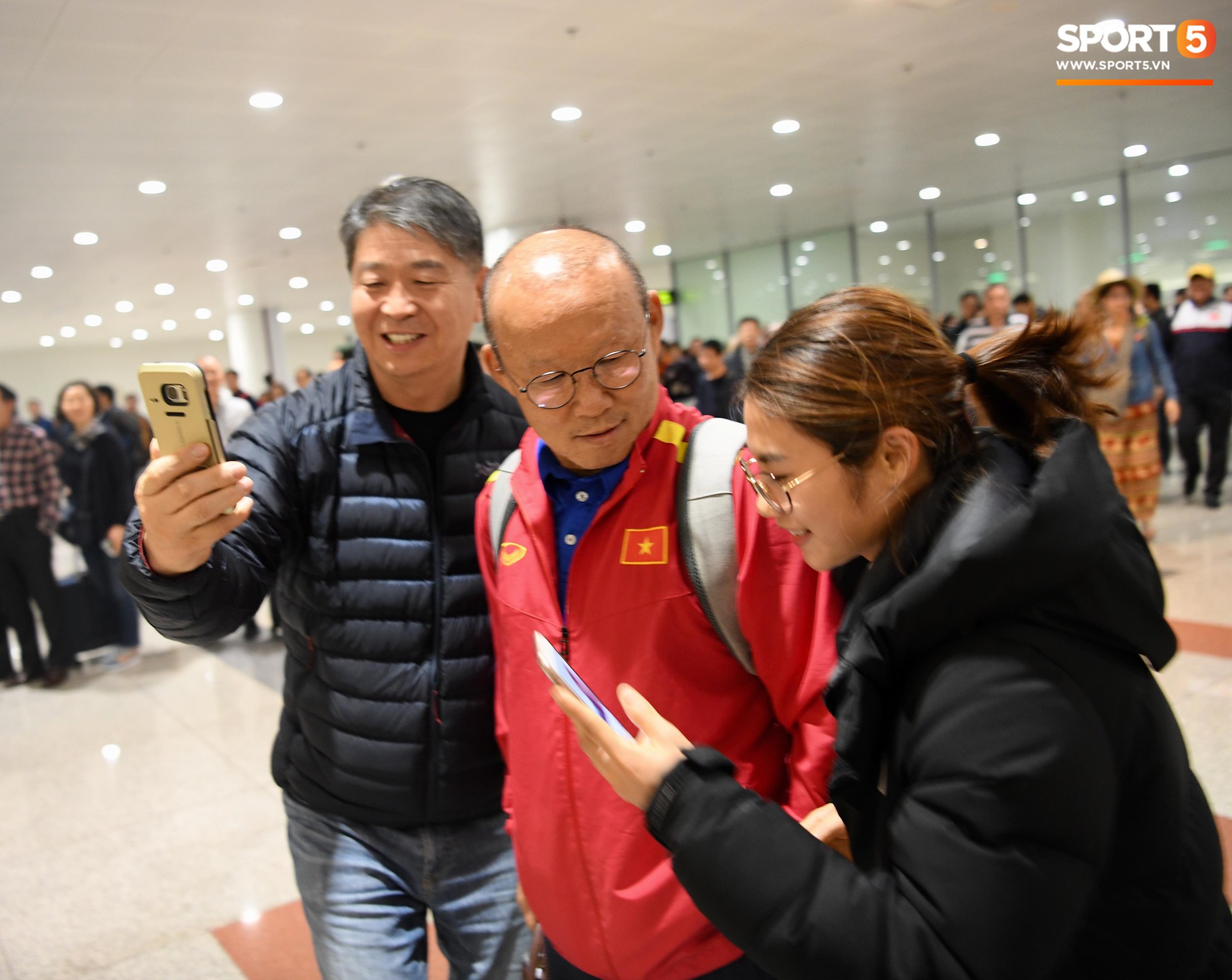 Ngay khi đội tuyển xuất hiện tại sảnh xuất nhập cảnh sân bay Nội Bài, đã có những cổ động viên (CĐV) người Hàn Quốc nhận ra HLV Park Hang-seo và xin chụp ảnh cùng.