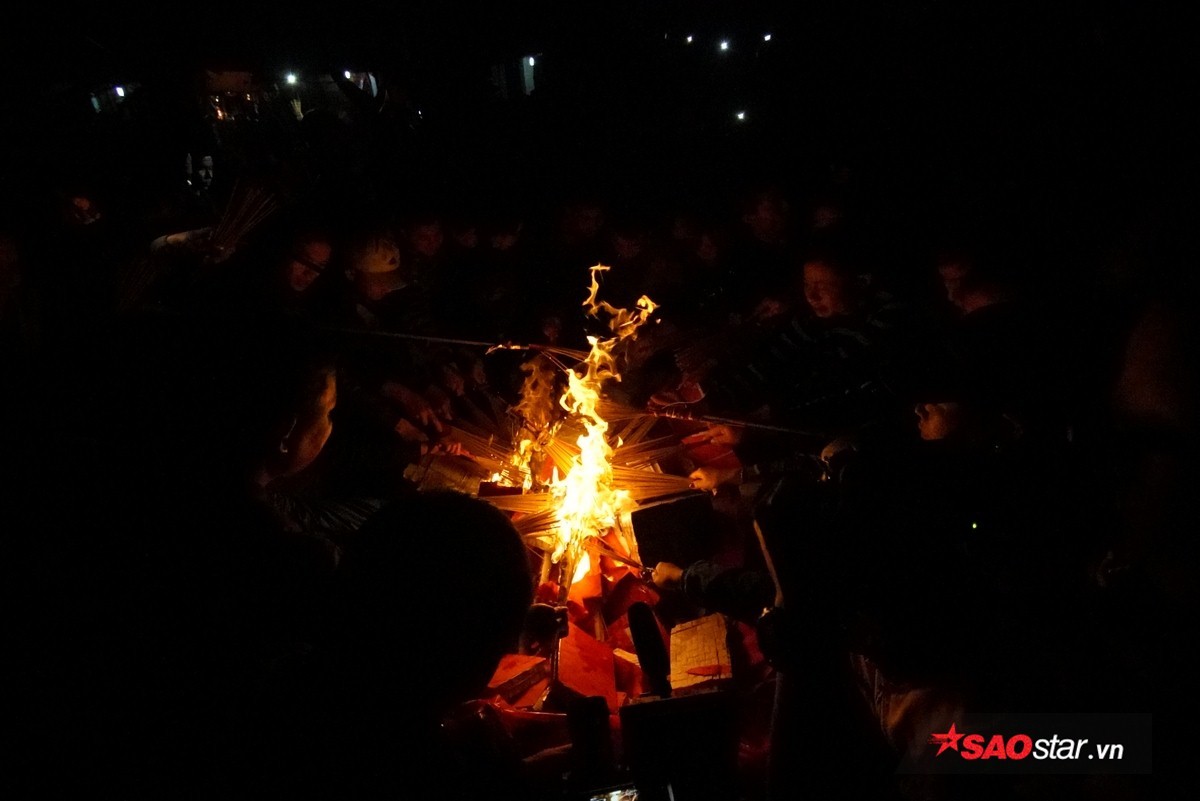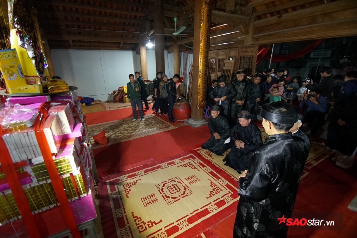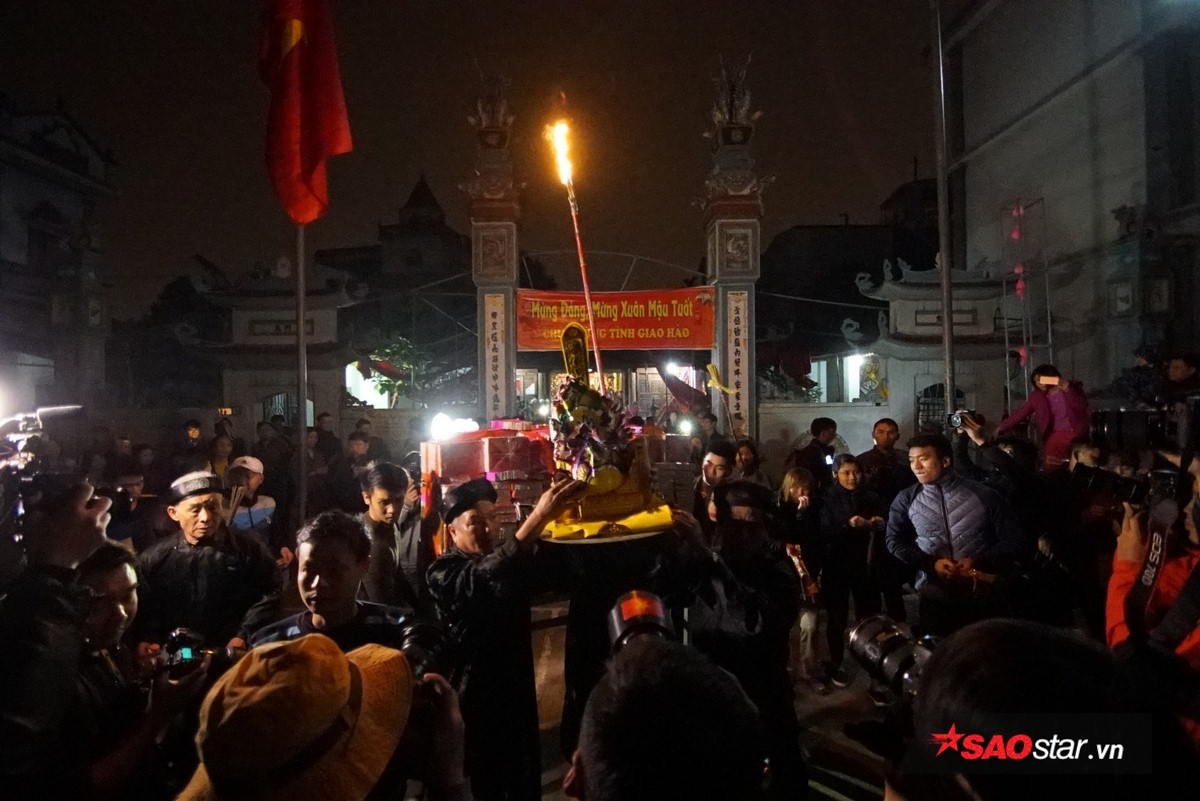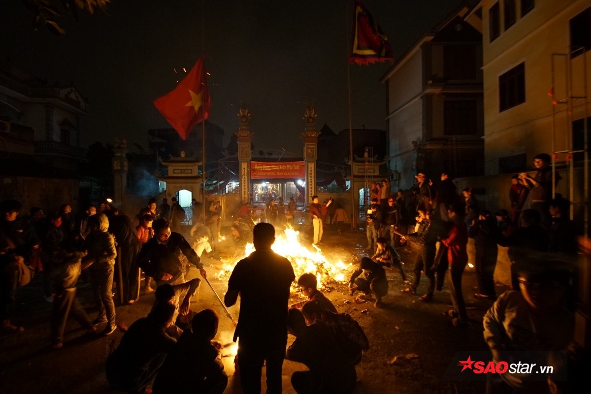 Đúng 21h, chủ tế lễ bước vào bên trong hậu cung của đình để lấy lửa và mang ra trong sự chờ đợi hào hứng của dân làng.