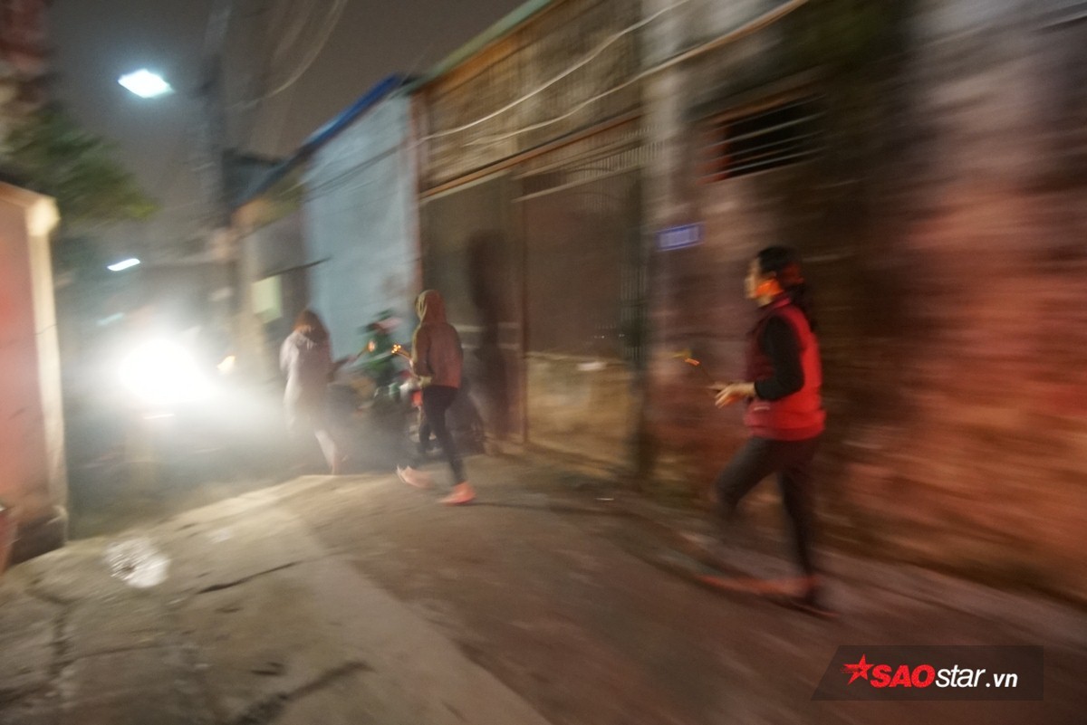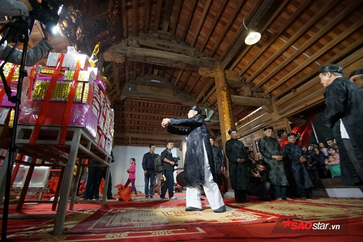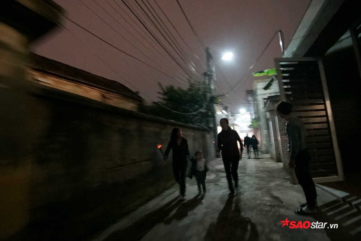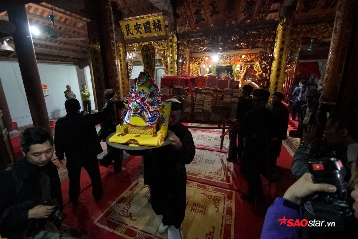 Đúng 21h, chủ tế lễ bước vào bên trong hậu cung của đình để lấy lửa và mang ra trong sự chờ đợi hào hứng của dân làng.