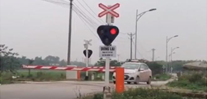 Theo Luật giao thông, khi có tín hiệu đèn đỏ thông báo tàu hỏa sắp đi qua, người dân tuyệt đối không được vượt thanh chắn barie. Được biết, clip trên được quay tại đường sắt dân sinh ở xã Nam Hồng (Đông Anh, Hà Nội).