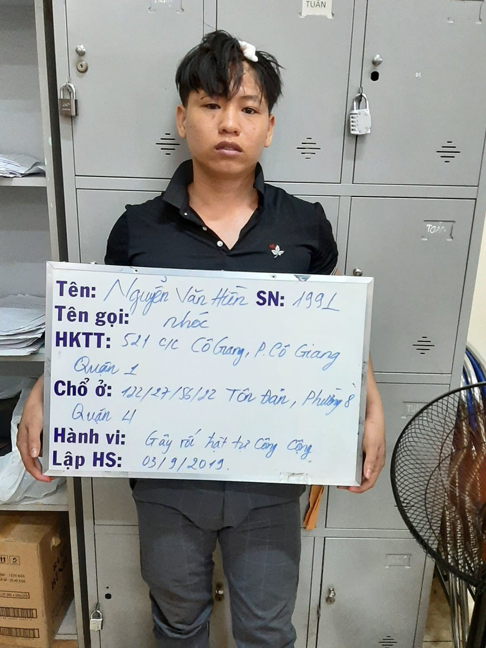 Liên quan vụ nhóm giang hồ xông vào đập phá nhà hàng trên đường Nguyễn Công Trứ (quận 1, TP.HCM) vào tối ngày 8/8, hôm nay (11/9), Phòng Cảnh sát hình sự Công an TP.HCM thông tin, vừa khởi tố bị can, bắt tạm giam Nguyễn Văn Hiền (còn gọi là Nhóc, SN 1991, ngụ quận 4) về tội gây rối trật tự công cộng. Theo đó, Hiền là nghi can cầm đầu vụ việc đập phá nhà hàng nêu trên.