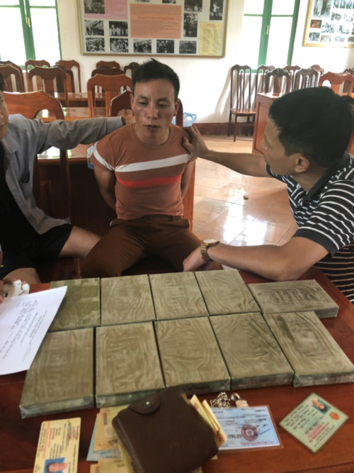 Vận chuyển trái phép 10 bánh heroin, đối tượng Phàn Vần Páo bị lực lượng chức năng bắt giữ. (Ảnh: Giáo dục và Thời đại).