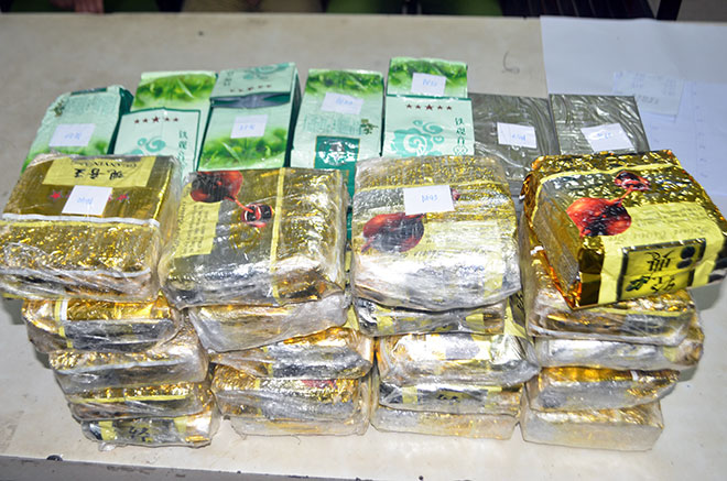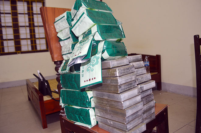 Tại hiện trường, lực lượng chức năng thu giữ 20kg ma túy dạng đá, 20kg ma túy dạng ketamin, 20 bánh heroin, 3 xe ô tô, 1 xe máy và 7 điện thoại di động.