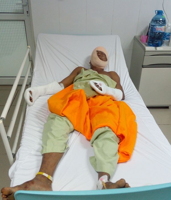 Nạn nhân Hòa (cậu của chị La) điều trị tại bệnh viện. Ảnh: CAND