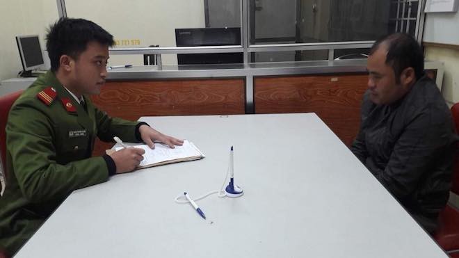 Nguyễn Hữu Dân tại cơ quan điều tra. Ảnh: Công an cung cấp