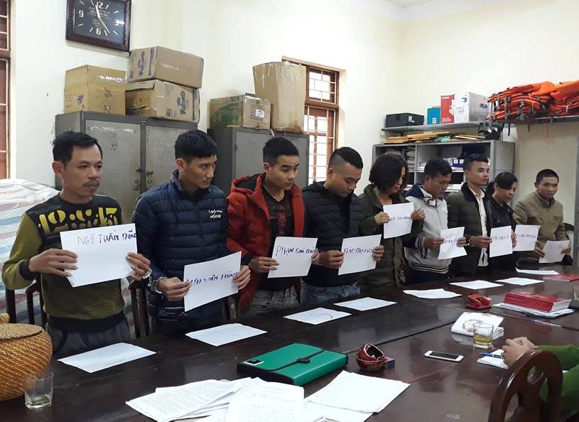 Danh tính các đối tượng được xác định gồm: Bùi Văn Hổ (SN 1987, trú tại xã Tam Hợp, huyện Quỳ Hợp, Nghệ An), Phạm Quốc Báo (SN 1994), Đào Duy Khánh (SN 1991), Nguyễn Thị Hạnh (SN 1975), Nguyễn Thị Vượng (SN 1971) cùng trú tại TP. Vinh, Ngô Tuấn Dũng (SN 1973, trú tại xã Vân Diên, huyện Nam Đàn), Lưu Văn Hùng (SN 1989) và Hà Huy Ý (SN 1995), trú tại thị trấn Hưng Nguyên, (huyện Hưng Nguyên).