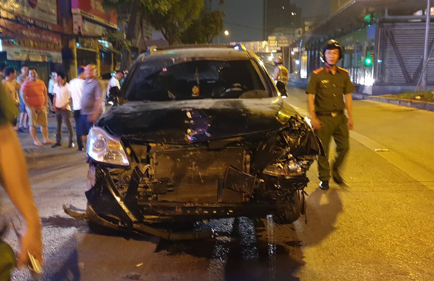 Theo lời một người dân khác chứng kiến vụ việc, chiếc “xe điên” xuất phát từ phố Vĩnh Hồ (phường Ngã Tư Sở) rồi đâm liên tiếp vào 3 phương tiện khác nhưng may mắn không ai bị thương. Sau đó, chiếc xe chạy với tốc độ kinh hoàng, đâm vào một bác chủ quán bún ven đường nhưng người này tránh kịp.