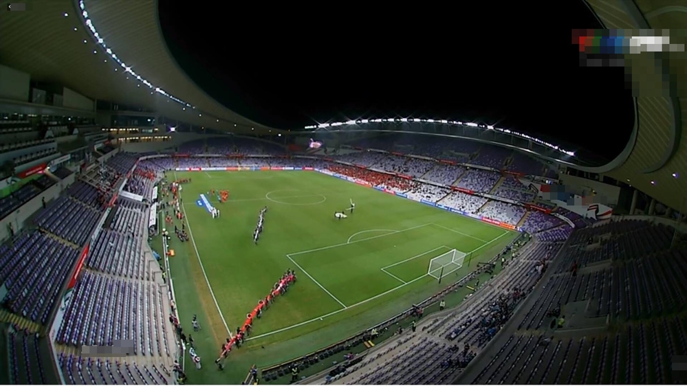 Cổ động viên Việt Nam nhuộm đỏ 1 vùng trên khán đài Hazza Bin Zayed, Al Ain, UAE . Ảnh: chụp từ màn hình.