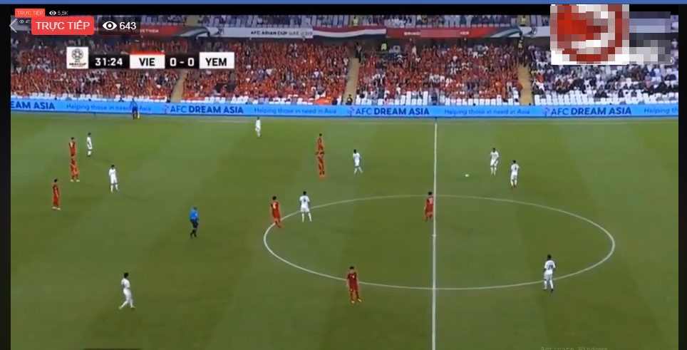 Dù thuận lợi về điều kiện địa lý nhưng cổ động viên Yemen vẫn chỉ lèo tèo so với cổ động viên Việt Nam trên khán đài. Ảnh:Chụp từ màn hình.