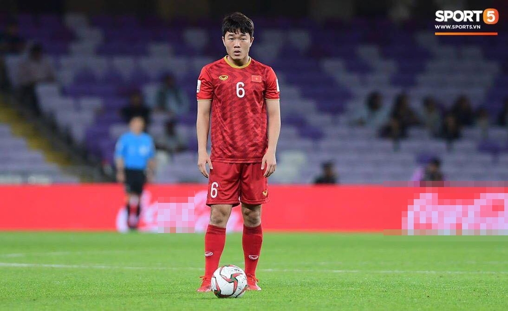 Phía xa xa Xuân Trường là khán đài cổ vũ của tuyển Yemen khá thưa thớt cổ động viên. Ảnh: SPORT5.