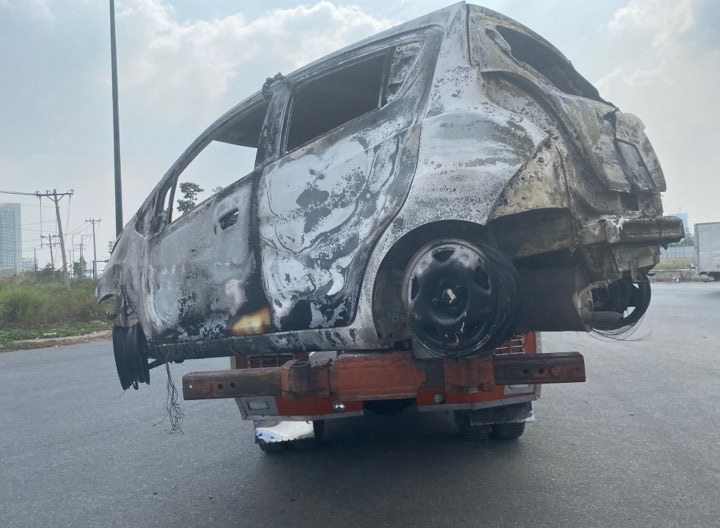 Ô tô bị đốt cháy rụi. Ảnh: báo Vietnamnet