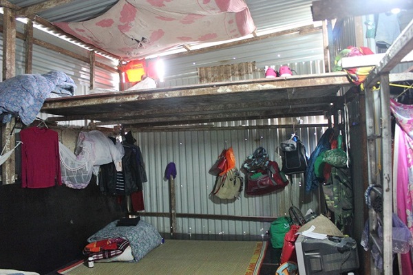 Chị Mận kể: “Quây bạt thì khó thở, ngột ngạt mà để mỗi cái phản không che đậy gì, hai vợ chồng nằm cũng ngại ngùng bởi xung quanh phần lớn là thanh niên chưa lập gia đình.