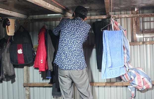 Theo quan sát của phóng viên, lán tạm được làm từ các tấm tôn sắt, bên trong chủ thầu xây dựng dùng giàn giáo, gỗ thừa ghép lại thành phản cho công nhân nằm. Phía trên là hệ thống “giường tầng” được gia cố bằng sắt và dây thép.